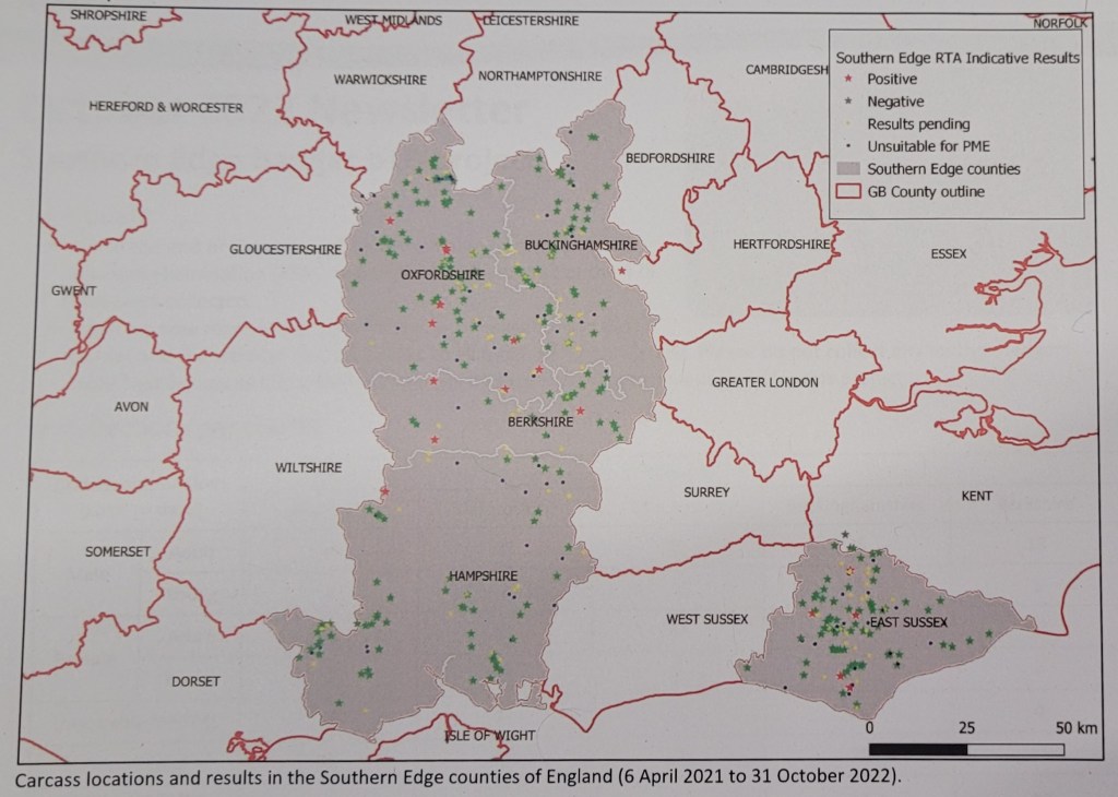 The fact is that since at least 2020 only 1 badger from Hampshire has tested positive for bTB, at least 578 have been shot (we’ve no idea what the final 2022 death figure will be yet) and that the APHA, and therefore DEFRA and NE, are well aware that in 2022 so far, only 1 out of 79 badgers tested under the “Southern Edge” project was carrying bTB and that the animal concerned was found right on the border with Wiltshire.